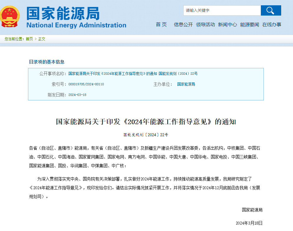 克日,,,,,国家能源局网站宣布“国家能源局关于印发《2024年能源事情指导意见》(下称“意见”)的通知”,,,,,意见明确,,,,,2024年能源事情主要目的为:供应包管能力一连增强、能源结构一连优化、质量效率稳步提高。。。。。意见中提到,,,,,要一连推动重点领域清洁能源替换,,,,,增进北方地区清洁取暖和一连向好生长,,,,,因地制宜推进超低排放热电联产集中供温暖地热、太阳能、生物质能等可再生能源供暖,,,,,逐步生长电力、工业余热、核能供暖等多种清洁供暖方法,,,,,推动具备条件的清洁供暖项目稳妥有序实验。。。。。