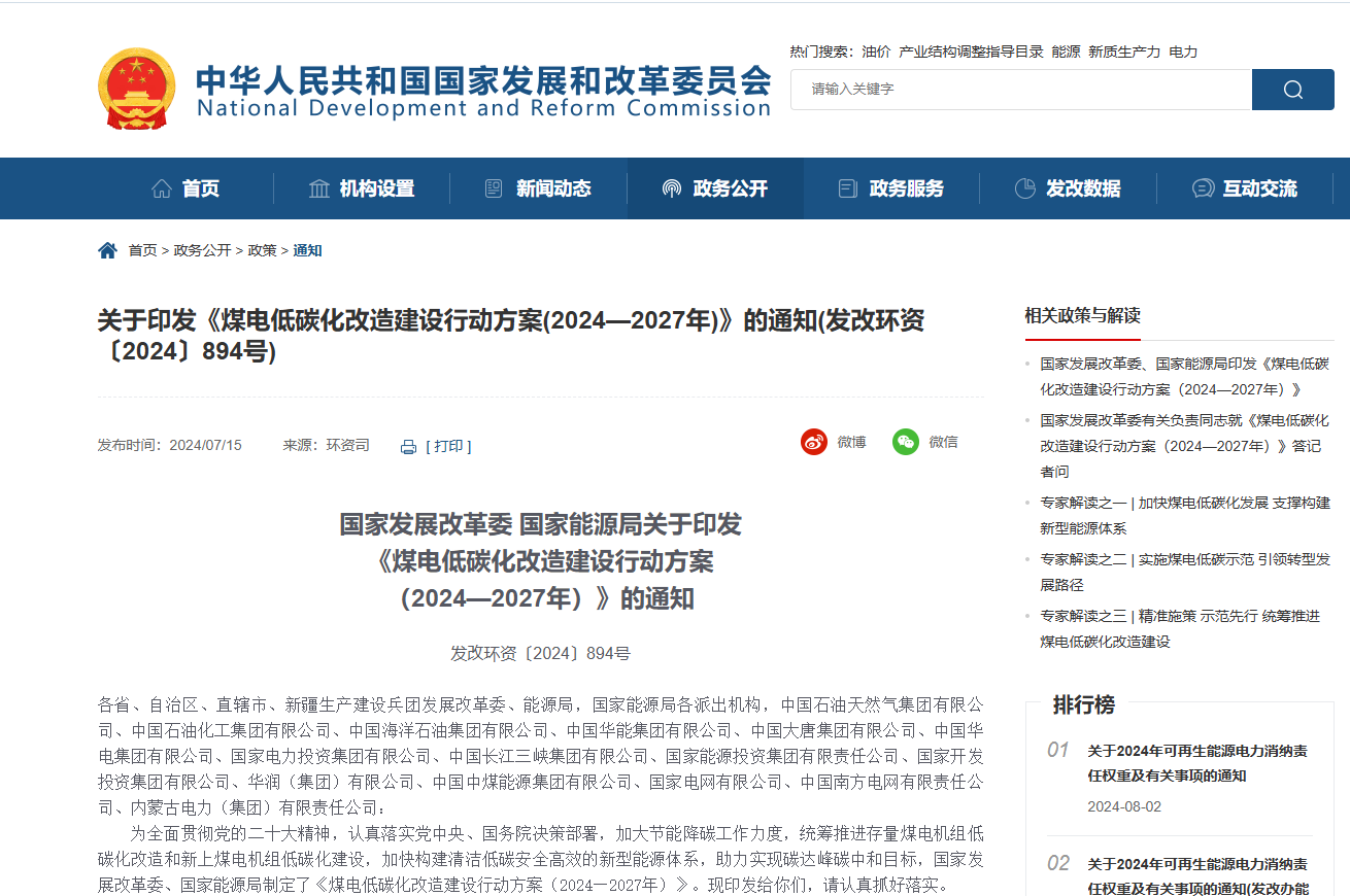 克日,,,国家发改委、国家能源局宣布《煤电低碳化刷新建设行动计划(2024—2027年)》(以下简称《行动计划》),,,明确提出煤电低碳化刷新建设的主要目的、建设要求和包管步伐。。。。。。。据相识,,,此次《行动计划》的出台,,,旨在统筹推进存量煤电机组低碳化刷新和新上煤电机组低碳化建设,,,推动构建清洁低碳清静高效的新型能源系统。。。。。。。